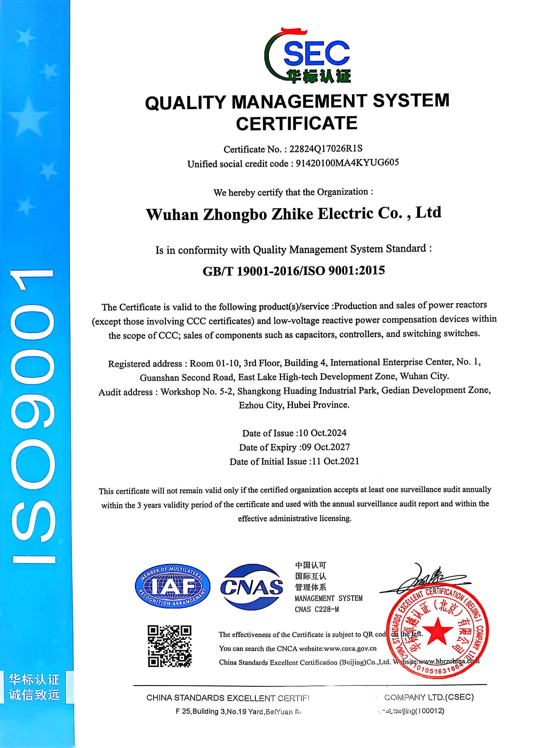 質(zhì)量管理體系認證證書(英文版)