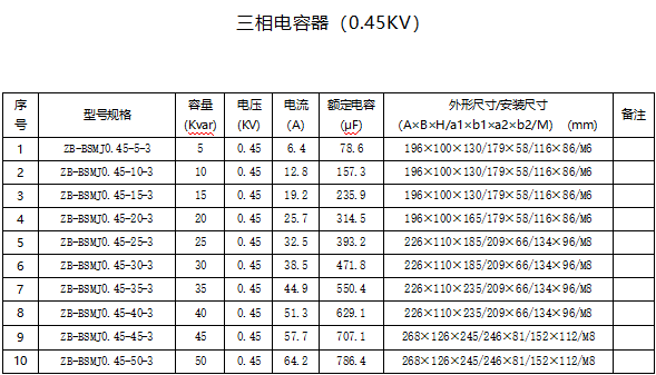 ZB-BSMJ系列并聯(lián)電容器適用于工頻50HZ-60HZ交流電力系統(tǒng)提高功率因數(shù)用。其特點是體積小、重量輕、損耗小、干式化、并具有獨特的自愈性能,內(nèi)設(shè)安全可靠的保護裝置,當電容器出現(xiàn)故障時,能可靠的切斷電源,退出運行。
